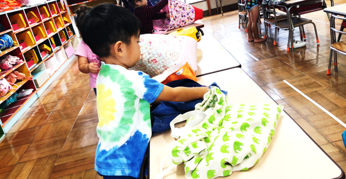「自立を促し、たくましさを育てるために“自分のことは自分でできる”をモットーに生活習慣の確立からたくましい”からだとこころ”を育てています」